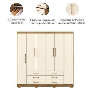 Guarda-roupa Casal 6 Portas 6 Gavetas 100% Mdf Cadence Nature/champagne Dimensões do Guarda-Roupa Casal Cadence: - Altura: 223 cm - Largura:223,4 - Comprimento: 47 Características do Guarda-Roupa Casal Cadence: