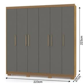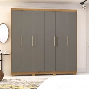 Com um design clássico, esse guarda roupa 6 portas conta com ótimos compartimentos internos, desde gavetas, nichos e cabideiros, os quais são fundamentais para a arrumação de roupas, calçados, acessórios e até mesmo caixas organizadoras, tudo para te ajudar na dinâmica do dia a dia e ter sempre à mão o que precisar. Para completar, o visual robusto e a tonalidade sóbria oferecem modernidade e bom gosto ao ambiente, dando aquele toque de charme na decoração, além de harmonizar facilmente com os demais móveis do quarto.