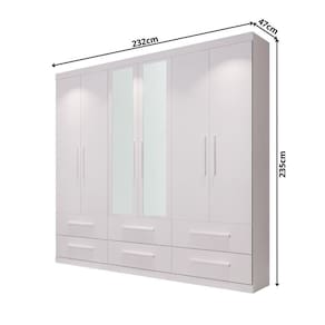 O roupeiro Aspen com 6 portas de bater, possui na sua distribuição externa 6 amplas gavetas de corrediças metálicas. Além de 2 cabideiros de tubo oblongo, proporcionando uma melhor organização interna. Com seu visual contemporâneo, possui puxadores de madeira, agregando ainda mais autenticidade para o seu ambiente. Acabamento da Prateleira: Pintura UV Escala de Brilho da Prateleira: Semi-Brilho Possui Cabideiros: Sim Acabamento da Gaveta: Pintura UV Escala de Brilho da Gaveta: Semi-Brilho Material do Puxador da Gaveta: MDF Possui Organizador de Gaveta: Não Acabamento da Porta: Pintura UV Escala de Brilho da Porta: Semi-Brilho Material do Puxador da Porta: MDF Altura do Espelho: 160 cm Ambiente Principal: Quarto codigo_ean: 7900288067678 Complexidade da Montagem: Média: pode ser montado por mais de uma pessoa e/ou necessite de maior conhecimento para montagem Cor: Branco Artico Cor do Produto: Branco Ártico Cor do Puxador: Marrom Cor Interna: Linho Escala de Brilho: Semi-Brilho Espessura da Estrutura (mm): 12 mm Espessura das Portas (mm): 12 mm Espessura das Prateleiras (mm): 12 mm Espessura do Espelho: 3 mm Espessura do Fundo (mm): 3 mm Espessura do Fundo das Gavetas (mm): 15 mm Fita Integrada: Sim Formato do Espelho: Retangular Gaveta com Chave: Não Guarda-Roupa Suporta Até (kg): 30 kg Itens Inclusos: 1 Roupeiro + 1 Manual de Montagem Largura do Espelho: 26,5 cm Linha ou Coleção: Ciclos Manual de Montagem e Instalação: https://product-hub-prd.madeiramadeira.com.br/978085/documents/075f871d-6744-495d-8f7f-f3ac22581778d2655526489017381705103339.pdf Marca: Edez Material da Gaveta: MDP Material da Porta: MDP Material da Prateleira: MDP Material Principal: MDP modular: Não Necessita Montagem: Sim Nicho com Cabideiro: Não Origem do Produto: Nacional Peso: 146,6 kg Peso Máximo por Gaveta: 5 kg Peso Máximo por Prateleira: 5 kg Porta Janelada: Não Possui Calceiros: Não Possui Capelinha: Não Possui Espaço para Vestidos Longos: Não Possui Espelho: Sim Possui Espelho Interno: Não Possui Ganchos: Não Possui Nichos: Não Possui Painel de TV: Não Possui Penteadeira: Não Possui Pés: Não Possui Portas: Sim Possui Prateleiras: Sim Possui Sapateira: Não Produto Montado: Sim Quantidade de Cabideiros: 02 Cabideiros Quantidade de Espelho: 02 Espelhos com Tamanhos Iguais Quantidade de Gavetas: 06 Gavetas Quantidade de Portas com Espelhos: 2 Portas com Espelho Quantidade de Prateleiras: 08 Prateleiras Recomendações de Uso, Manutenção e Limpeza: Recomenda-se a utilização de pano seco. Sistema de Montagem: Parafuso e Minifix Suporta Até (kg): 30 kg Tipo de Corrediça da Gaveta: Metálica Simples Tipo de Dobradiça/Corrediça da Porta: Metálica Tipo de Fixação do Espelho: Fita Dupla Face Tipo de Gaveta: Externa Tipo de Guarda-Roupa: Solteiro Tipo de Puxador da Gaveta: Externo Tipo de Puxador da Porta: Externo