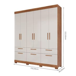 Este guarda-roupa é fabricado com 100% MDF, garantindo resistência e durabilidade. O acabamento em pintura UV oferece proteção e um brilho uniforme, aumentando a vida útil do móvel. Conta com 6 portas e 6 gavetas, ideais para armazenar uma grande variedade de itens, desde roupas até acessórios, oferecendo excelente capacidade interna.