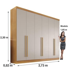 O Guarda-Roupa Gramado 100% MDF Valverde Móveis, possui acabamento texturizado, moderno, encontrado apenas nas melhores fábricas de Minas. Este produto possui um contexto de conforto, qualidade e satisfação que atraem até os clientes mais exigentes é um móvel conceitual e imponente, ele impressiona por sua grandiosidade, pelos espaços bem distribuídos e os detalhes pensados para atender as mais variadas necessidades do usuário, são eles: puxadores em mdf alongados com design moderno e funcional, portas com dobradiças 35 mm, cabideiros e calceiro metálicos, nichos central para acessórios, sapateiras e espaço para longos, gavetas com corrediças telescópicas, para acomodar os seus pertences e proporcionar a melhor organização do espaço. Acabamento da Prateleira: Pintura Texturizada UV Escala de Brilho da Prateleira: Fosco Possui Cabideiros: 03 Acabamento da Gaveta: Pintura Texturizada UV Possui Organizador de Gaveta: Não Acabamento da Porta: Pintura Texturizada UV Escala de Brilho da Porta: Fosco Material do Puxador da Porta: MDF Ambiente Principal: Quarto Complexidade da Montagem: Alta: deve ser montado por um montador especializado Cor: Cinamomo/Off White Cor do Produto: Cinamomo/Off White Escala de Brilho: Fosco Gaveta com Chave: Não Itens Inclusos: 1 Guarda-Roupa, Manual de Montagem, Kit Ferragens Linha ou Coleção: Gramado Manual de Montagem e Instalação: https://cdn2.madeiramadeira.com.br/atributo/valverde/1336351-7899224223158-1.pdf Material da Gaveta: MDF Material da Porta: MDF Material da Prateleira: MDF Material Principal: MDF Necessita Montagem: Sim Origem do Produto: Nacional Peso: 224 Peso Máximo por Gaveta: 5 Peso Máximo por Prateleira: 3 Possui Calceiros: 01 Possui Espelho: Não Possui Pés: Não Possui Portas: 06 Possui Prateleiras: 07 Recomendações de Uso, Manutenção e Limpeza: Limpeza com pano macio e levemente umedecido. Não utilizar solventes a base e de inflamáveis. Não utilizar produtos abrasivos. Sistema de Montagem: Parafusos, Cavilhas, Dobradiças e Puxadores. Tipo de Corrediça da Gaveta: Metálica Telescópica Tipo de Dobradiça/Corrediça da Porta: Metálica Tipo de Gaveta: Interna Tipo de Guarda-Roupa: Casal Tipo de Puxador da Gaveta: Não Possui Tipo de Puxador da Porta: Externo