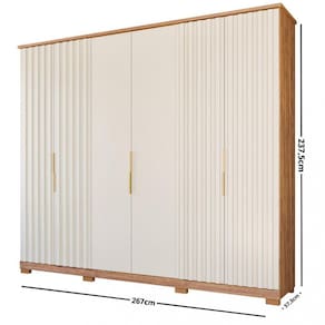 Características: Estrutura em MDF Acabamento em pintura UV 6 Portas Dobradiças Slow Motion 6 Gavetas Corrediças telescópicas Cabideiros em alumínio com suporte metálico Puxadores em alumínio Pés em ABS