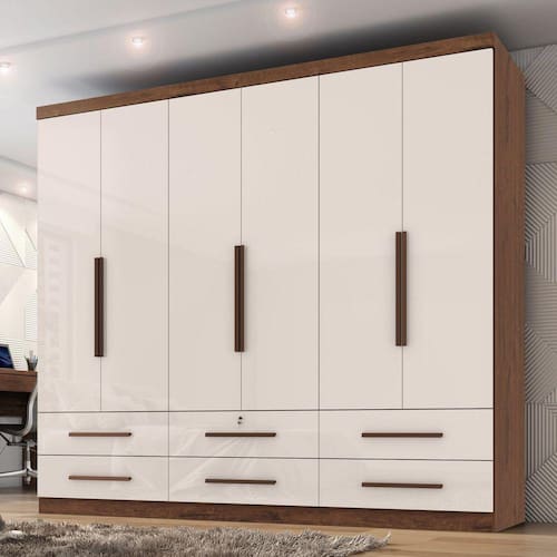 O Guarda Roupa Maximus Plus é um produto de amplo espaço com excelente divisão interna, com seis gavetas que deslizam suavemente sobre corrediças telescópicas, uma gaveta com chave e tambor de aço para maior segurança, duas prateleiras para guardar as roupas que precisam ser dobradas, cabideiros metálicos para pendurar as roupas com organização. Sem falar no design moderno para compor o ambiente de seu quarto com beleza e qualidade. Acabamento da Prateleira: Pintura UV Escala de Brilho da Prateleira: Fosco Possui Cabideiros: 02 Acabamento da Gaveta: Pintura UV Escala de Brilho da Gaveta: Brilhante Tipo de Corrediça: Metálica Telescópica Material do Puxador da Gaveta: MDF Possui Organizador de Gaveta: Não Acabamento da Porta: Pintura UV Escala de Brilho da Porta: Brilhante Material do Puxador da Porta: MDF Ambiente Principal: Quarto codigo_ean: 7909903356579 Complexidade da Montagem: Alta: deve ser montado por um montador especializado Cor: Jacaranda/Off White Cor do Produto: Jacarandá/Off White Cor Interna: Trama Escala de Brilho: Brilhante Gaveta com Chave: Sim Guarda-Roupa Suporta Até (kg): 40 kg Itens Inclusos: 1 Guarda Roupa, Kit Ferragens e Manual de Montagem Linha ou Coleção: Maximus Manual de Montagem e Instalação: https://product-hub-prd.madeiramadeira.com.br/859372/documents/e0e0f4f6-7e19-4519-a3f1-edbd637a94aa140403710220606.pdf Material da Gaveta: MDF Material da Porta: MDP Material da Prateleira: MDP Material Principal: MDP Necessita Montagem: Sim Origem do Produto: Nacional Peso: 139 kg Peso Máximo por Gaveta: 3 kg Peso Máximo por Prateleira: 5 kg Possui Calceiros: Não Possui Espaço para Vestidos Longos: Não Possui Espelho: Não Possui Espelho Interno: Não Possui Ganchos: Não Possui iluminação: Não Possui Nichos: Não Possui Painel de TV: Não Possui Pés: Não Possui Prateleiras: Sim Possui Sapateira: Não Quantidade de Gavetas: 06 Gavetas Quantidade de Prateleiras: 02 Prateleiras Recomendações de Uso, Manutenção e Limpeza: Limpar com flanela ou pano macio seco, não utilizar produtos abrasivos, desengordurantes, álcool ou qualquer outro produto químico. Não expor o produto diretamente à luz solar e à umidade Sistema de Montagem: Parafusos auto atarraxantes, cola, cavilhas, pregos Suporta Até (kg): 40 kg Tipo de Corrediça da Gaveta: Metálica Telescópica Tipo de Dobradiça/Corrediça da Porta: Metálica Tipo de Gaveta: Externa Tipo de Guarda-Roupa: Casal Tipo de Puxador: Externo Tipo de Puxador da Gaveta: Externo Tipo de Puxador da Porta: Externo