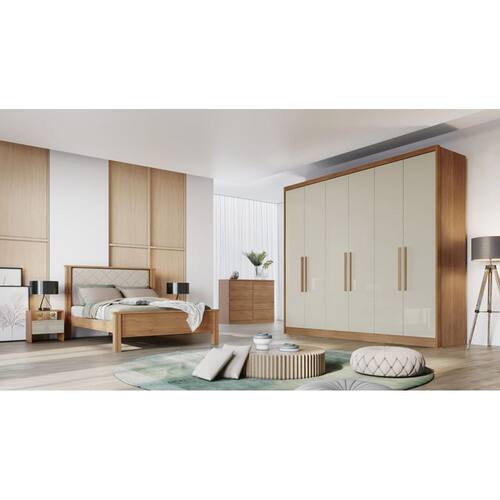 Guarda Roupa Casal 6 Portas 6 Gavetas - Messina-Cumaru/Fendi - Móveis Novo Horizonte