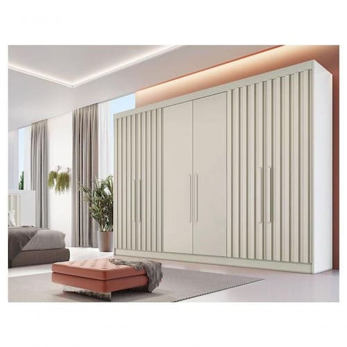Guarda-roupa Casal 6 Portas 6 Gavetas Móveis Europa Ripado Potente Off White