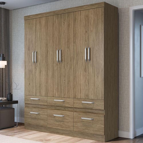 O(a) Guarda-Roupa Casal 6 Portas 6 Gavetas Rp3660 Wood - Decibal Móveis é produzido em MDP na escala de brilho Fosco, e possui um grau de dificuldade de montagem: Médio.