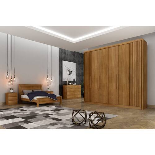 Guarda Roupa Casal 6 Portas 6 Gavetas - Santoro Ripado-Cumaru - Móveis Novo Horizonte O Guarda Roupa Santoro Ripado vai proporcionar um ambiente aconchegante mantendo um visual sofisticado e funcional. Composto por peças de extrema qualidade e com excelente espaço interno bem distribuídos, oferecendo máxima organização de forma prática. Fabricado em 100% MDF, 6 portas de bater, possui 6 gavetas com corrediças telescópicas, puxadores com acabamento amadeirado e cabideiros em alumínio. Amplo espaço interno. Aproveite! Faz parte do anúncio: 1 Guarda Roupa Casal 6 Portas 6 Gavetas - Santoro Ripado - Móveis Novo Horizonte Obs. Objetos de decoração não inclusos Particularidades do guarda-roupa: Características: - 100% MDF; - Colunado em 25mm; - Puxadores com acabamento amadeirado; - 6 Gavetas internas com puxadores; - Corrediças telescópicas; - Dobradiça de pressão de 35mm; - Fundo inteiriço; - Cabideiros em alumínio; Dimensões: Altura: 2,36 metros Largura: 2,43 metros Profundidade: 56,5 centímetros Informações Importantes:. -Produtos podem apresentar diferenças de tonalidades entre a foto na tela e o produto real, devido a calibração de cor de tela. -Limpar com flanela ou pano macio. Não utilizar álcool. Não utilizar produtos abrasivos ou corrosivos. -Nós prezamos pela qualidade da entrega em primeiro lugar, trabalhamos com transportadoras altamente selecionadas e os melhores materiais de embalagem. -A montagem é de total responsabilidade do comprador. Antes de comprar, verifique o espaço disponível para a montagem. -Certifique-se de que o produto caiba em elevadores e vãos de escadas, não fazemos içamentos. Quaisquer despesas deste tipo ficam a cargo do cliente -Garantia de 3 meses contra defeitos de fabricação.
