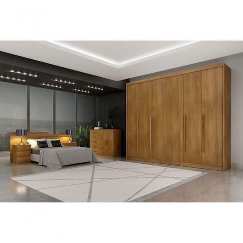 O Guarda Roupa Coimbra vai proporcionar um ambiente aconchegante mantendo um visual sofisticado e funcional. Composto por peças de extrema qualidade e com excelente espaço interno bem distribuídos, oferecendo máxima organização de forma prática. Fabricado em 100% MDF, 6 portas de bater, possui 8 gavetas com corrediças telescópicas, puxadores com acabamento amadeirado e cabideiros em alumínio. Amplo espaço interno. Aproveite!