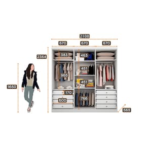 Dimensões: Altura: 2,36 metros Largura: 2,11 metros Profundidade: 56,5 centímetros