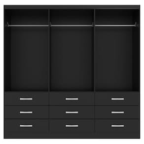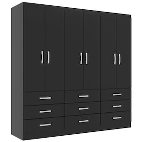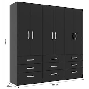O(a) Guarda-Roupa Casal 6 Portas 9 Gavetas Preto- Evidencia Móveis é produzido em MDP na escala de brilho Fosco, e possui um grau de dificuldade de montagem: Médio.