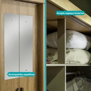 O Guarda-Roupa Aspen 1152 é ideal para traduzir sua essência e personalidade em seu quarto. Com um design moderno e linhas simples, este guarda-roupa se adapta facilmente a diversos estilos de decoração. Suas 6 portas de abrir, divididas em 3 partes, proporcionam acesso fácil e organização eficiente. O espelho central adiciona praticidade ao ambiente, enquanto as 3 gavetas externas oferecem espaço extra para pequenos objetos. Internamente, conta com amplo espaço para acomodar roupas e acessórios, garantindo organização total. Fabricado com MDP de alta qualidade, possui acabamento em pintura UV, garantindo durabilidade e resistência. O rodapé estrutural e os puxadores em ABS completam o visual moderno e funcional deste guarda-roupa. Renove seu quarto e desfrute de um ambiente confortável e aconchegante.