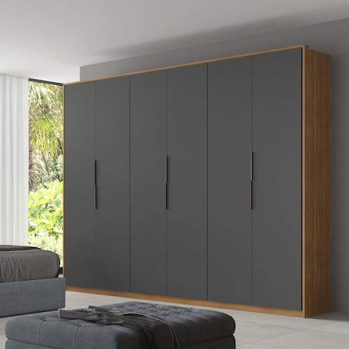 "O guarda roupa Atrice traz em seu design a união da beleza, funcionalidade e versatilidade, devido as diversas configurações e disposição de portas, sendo todas em espelho ou simplesmente em madeira. A harmonia de cores, disposição de puxadores, juntamente com o fechamento total das molduras envolventes embelezam o produto e o ambiente. Qualidade em todos os detalhes: na escolha dos materiais, ao cuidado no planejamento e na realização. Os acabamentos das linhas da DEMARTÊZ, são o resultado de pesquisas estéticas em madeiras redefinindo suas características intrínsecas e propondo diferentes tonalidades. Acabamento da Prateleira: Pintura Escala de Brilho da Prateleira: Fosco Possui Cabideiros: 03 Acabamento da Gaveta: Pintura Escala de Brilho da Gaveta: Fosco Possui Organizador de Gaveta: Não Acabamento da Porta: Pintura Escala de Brilho da Porta: Fosco Material do Puxador da Porta: Alumínio Acabamento dos Pés: Pintura Altura dos Pés: 7 cm Ambiente Principal: Quarto Complexidade da Montagem: Alta: deve ser montado por um montador especializado Cor: Amendola/Grafite Cor do Produto: Amendola/Grafite Escala de Brilho: Fosco Gaveta com Chave: Não Informações Complementares: Itens Inclusos: 1 Guarda Roupa, Kit Ferragens e Manual De Montagem. Linha ou Coleção: Manual de Especificação Técnica: Manual de Montagem e Instalação: https://cdn2.madeiramadeira.com.br/atributo/demobile-novo/936001-esquema-de-montagem-d66010.pdf Material da Gaveta: MDP Material da Porta: MDP Material da Prateleira: MDP Material dos Pés: MDP Material Principal: MDP Necessita Montagem: Sim Origem do Produto: Nacional Peso: 222.399 Peso Máximo por Gaveta: 4 kg Peso Máximo por Prateleira: 4 kg Possui Calceiros: Não Possui Espelho: Não Possui Pés: Rodapé Possui Portas: 06 Possui Prateleiras: 04 Recomendações de Uso, Manutenção e Limpeza: Flanela Seca. Resistente à Chuva: Sapatas Niveladoras: Sim Sistema de Montagem: Parafusos e Cavilhas. Suporta Até (kg): 4 Tamanho: Tipo de Corrediça da Gaveta: Metálica Telescópica Tipo de Dobradiça/Corrediça da Porta: Metálica Tipo de Gaveta: Interna Tipo de Guarda-Roupa: Casal Tipo de Puxador da Gaveta: Não Possui Tipo de Puxador da Porta: Externo