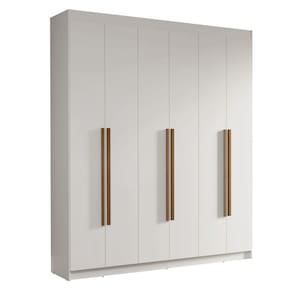 Possui uma pintura de alta resistência, que garante durabilidade e um acabamento impecável por muito mais tempo. A estrutura e as portas são na coloração Branca e os puxadores em tom amadeirado Rustic, criando um visual sofisticado que se adapta a qualquer estilo de decoração. Os puxadores de 80 cm, fabricados em MDF, são um dos grandes diferenciais, trazendo um design alongado e moderno.