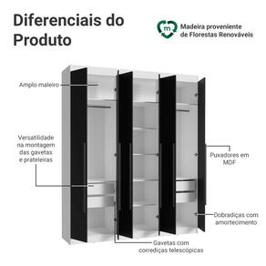 Possui uma pintura de alta resistência, que garante durabilidade e um acabamento impecável por muito mais tempo. A estrutura é na coloração Branca, as portas e os puxadores são na coloração preta, criando um visual sofisticado que se adapta a qualquer estilo de decoração. Os puxadores de 80 cm, fabricados em MDF, são um dos grandes diferenciais, trazendo um design alongado e moderno.