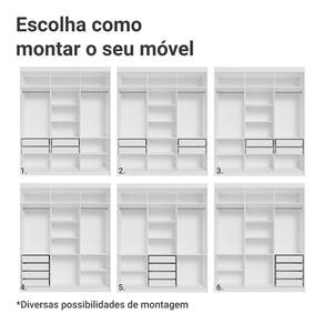 O Guarda-Roupa Venus oferece versatilidade para organizar seu espaço da melhor forma. Com dobradiças com amortecimento, as portas fecham suavemente. As gavetas com corrediças telescópicas permitem abertura total, enquanto o amplo maleiro é perfeito para itens maiores. Além disso, você pode ajustar as gavetas e prateleiras para personalizar o interior conforme suas necessidades.