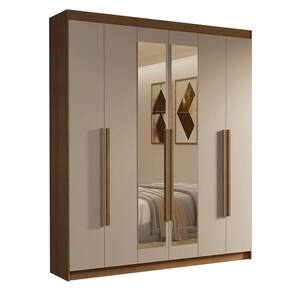 Guarda-Roupa Casal 6 Portas Batentes com Espelho Rustic/Crema/Rustic Saturno Madesa - Bege