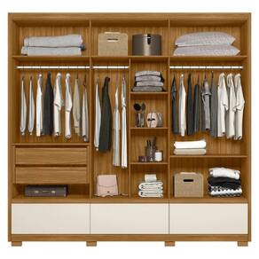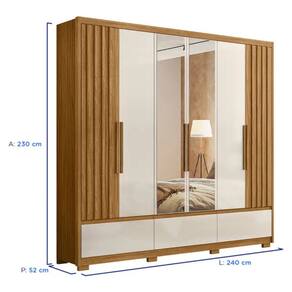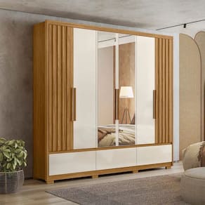 A sua melhor opcao esta aqui! O Roupeiro possui 6 portas de bater e 5 gavetas, todas produzidas em material MDP. Vale tambem destacar que sao 3 gavetas externas e 2 gavetas internas, para voce deixar o seu guarda-roupa bem organizado. E alem disso, conta com 3 cabideiros e um espelho com espessura de 3mm. E por fim, o guarda-roupa conta com dobradicas metalicas e corredicas telescopicas. A Moval, sempre proporcionando a melhor qualidade ao seu cliente!