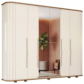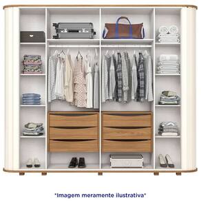 Composto por 6 portas e 6 gavetas internas, este roupeiro proporciona uma organizacao eficiente de roupas, acessorios e itens pessoais. A distribuicao interna conta ainda com 2 cabideiros, ideais para acomodar roupas longas ou delicadas, alem de manter tudo visivel e acessivel. O espaco interno foi pensado para otimizar o seu tempo no dia a dia, facilitando na hora de encontrar o que precisa.