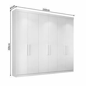 O Guarda-Roupa Bélgica 6 portas é uma ótima opção para quem busca um produto que combine com qualquer ambiente e ainda apresente elegância e praticidade. Além disso, este modelo possui um amplo espaço interno, que conta com cabideiro, prateleiras, calceiros e 2 gavetas. Acabamento da Prateleira: Pintura Texturizada UV Escala de Brilho da Prateleira: Semi-Brilho Possui Cabideiros: Sim Acabamento da Gaveta: Pintura Texturizada UV Escala de Brilho da Gaveta: Semi-Brilho Possui Organizador de Gaveta: Não Acabamento da Porta: Pintura Texturizada UV Escala de Brilho da Porta: Semi-Brilho Material do Puxador da Porta: MDF Ambiente Principal: Quarto codigo_ean: 7900288067890 Complexidade da Montagem: Baixa: pode ser montado por uma pessoa sozinha Cor: Branco Cor do Produto: Branco Cor do Puxador: Marrom Cor Interna: Linho Escala de Brilho: Semi-Brilho Espessura da Estrutura (mm): 12 mm Espessura das Portas (mm): 15 mm Espessura das Prateleiras (mm): 12 mm Espessura do Fundo (mm): 3 mm Espessura do Fundo das Gavetas (mm): 3 mm Gaveta com Chave: Não Guarda-Roupa Suporta Até (kg): 30 kg Itens Inclusos: 1 Guarda Roupa,1 Kit de Ferragens e 1 Manual de Montagem Linha ou Coleção: Ciclos Manual de Montagem e Instalação: https://product-hub-prd.madeiramadeira.com.br/978227/documents/21e8a6b5-87d8-462d-8150-5276bb8ec7a5a6bfacd984329manualph17071.pdf Marca: Edez Material da Gaveta: MDP Material da Porta: MDP Material da Prateleira: MDP Material Principal: MDP modular: Não Necessita Montagem: Sim Nicho com Cabideiro: Sim Origem do Produto: Nacional Peso: 143,85 kg Peso Máximo por Gaveta: 5 kg Peso Máximo por Prateleira: 5 kg Porta Janelada: Não Possui Calceiros: 03 Possui Capelinha: Não Possui Espaço para Vestidos Longos: Não Possui Espelho: Não Possui Espelho Interno: Não Possui Ganchos: Não Possui Painel de TV: Não Possui Penteadeira: Não Possui Pés: Não Possui Portas: Sim Possui Prateleiras: Sim Possui Sapateira: Não Produto Montado: Sim Quantidade de Cabideiros: 01 Cabideiro Quantidade de Gavetas: 02 Gavetas Quantidade de Prateleiras: 10 Prateleiras Recomendações de Uso, Manutenção e Limpeza: Recomenda-se a utilização de pano seco. Sistema de Montagem: Minifix e parafuso Suporta Até (kg): 30 kg Tipo de Corrediça da Gaveta: Metálica Simples Tipo de Dobradiça/Corrediça da Porta: Metálica Tipo de Gaveta: Interna Tipo de Guarda-Roupa: Casal Tipo de Puxador da Gaveta: Não Possui Tipo de Puxador da Porta: Externo