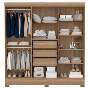 Esseguarda roupa vem para completar o seu dormitório destacando as suas belas características que faz ser um móvel perfeito, contendo 6 portas convencionais, as duas portas centrais vêm com espelho para lhe ajudar na hora de se arrumar, possui 3 gavetas, 4 prateleiras, 1 cabideiro e 1 calceiro fazendo que suas roupas fiquem mais organizadas e facilita achar aquela peça que mais gosta de usar. Com design moderno e sua estrutura feita em MDP dá qualidade e durabilidade ao seu guarda roupa.