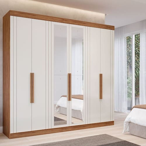 Transforme seu espaço com o Guarda-Roupas Boston, feito com estrutura 100% MDF para garantir maior resistência. Com acabamento em pintura UV para um toque de elegância, suas gavetas deslizam suavemente graças às corrediças telescópicas. Os cabideiros em alumínio e as prateleiras internas proporcionam uma organização impecável para suas roupas e acessórios. Acabamento da Prateleira: Pintura UV Escala de Brilho da Prateleira: Fosco Possui Cabideiros: Sim Acabamento da Gaveta: Pintura UV Escala de Brilho da Gaveta: Fosco Material do Puxador da Gaveta: MDF Possui Organizador de Gaveta: Não Acabamento da Porta: Pintura UV Escala de Brilho da Porta: Brilhante Material do Puxador da Porta: MDF Altura do Espelho: 98 cm Ambiente Principal: Quarto codigo_ean: 7900288144188 Complexidade da Montagem: Alta: deve ser montado por um montador especializado Cor: Cinamomo/Off White Cor da Porta: Off White Cor do Produto: Cinamomo/Off White Cor Interna: Cinamomo Escala de Brilho: Brilhante Espessura da Estrutura (mm): 12 mm Espessura das Portas (mm): 15 mm Espessura das Prateleiras (mm): 15 mm Espessura do Espelho: 3 mm Espessura do Fundo (mm): 2,5 mm Espessura do Fundo das Gavetas (mm): 2,5 mm Formato do Espelho: Retangular Gaveta com Chave: Não Itens Inclusos: 1 Guarda-Roupa, Kit Ferragens e Manual de Montagem. Largura do Espelho: 27,8 cm Linha ou Coleção: Boston Manual de Montagem e Instalação: https://product-hub-prd.madeiramadeira.com.br/587393997/documents/ba62be2c-bd10-4ff5-937c-88b983d24ebea9d2735c1fec99871746727226.pdf Marca: Espresso Móveis Material da Gaveta: MDF Material da Porta: MDF Material da Prateleira: MDF Material Principal: MDF modular: Não Necessita Montagem: Sim Origem do Produto: Nacional Peso: 183,28 kg Peso Máximo por Gaveta: 5 kg Peso Máximo por Prateleira: 5 kg Porta Janelada: Não Possui Calceiros: Não Possui Capelinha: Não Possui Espaço para Vestidos Longos: Não Possui Espelho: Sim Possui Espelho Interno: Não Possui Ganchos: Não Possui iluminação: Não Possui Nichos: Não Possui Painel de TV: Não Possui Penteadeira: Não Possui Pés: Não Possui Portas: Sim Possui Prateleiras: Sim Possui Sapateira: Não Produto Montado: Sim Quantidade de Cabideiros: 02 Cabideiros Quantidade de Espelho: 04 Espelhos com Tamanhos Iguais Quantidade de Gavetas: 06 Gavetas Quantidade de Portas com Espelhos: 2 Portas com Espelho Quantidade de Prateleiras: 06 Prateleiras Recomendações de Uso, Manutenção e Limpeza: Para limpeza utilizar somente pano limpo e macio, ligeiramente umedecido em água (apenas o bastante para remover a poeira), seguido de um pano seco. Sistema de Montagem: Parafusos autoatarraxantes, conjuntos minifix, cavilhas de madeira, acessórios plásticos e metálicos Tipo de Corrediça da Gaveta: Metálica Telescópica Tipo de Dobradiça/Corrediça da Porta: Telescópica Tipo de Fixação do Espelho: Parafusos Tipo de Gaveta: Interna Tipo de Guarda-Roupa: Casal Tipo de Puxador da Gaveta: Não Possui Tipo de Puxador da Porta: Externo