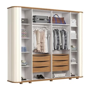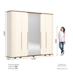 O Roupeiro Magno foi desenvolvido para o público que busca elegância, sofisticação e qualidade garantida. Desenvolvido com materiais de mais alta qualidade, possui 06 portas, 06 gavetas com corrediças telescópicas e com usinagem para pega, cabideiro em alumínio, puxadores Titanius 873cm em alumínio com acabamento em dourado, curvado com apliques ripados, 02 portas com espelhos, chapéu com acabamento curvado em 25cm dobradiças com fechamento suave, pés em ABS resistente. Seu amplo espaço interno oferece uma organização eficiente e prática para suas roupas. Acabamento da Prateleira: Pintura Texturizada UV Escala de Brilho da Prateleira: Fosco Possui Cabideiros: Sim Acabamento da Gaveta: Pintura Texturizada UV Possui Organizador de Gaveta: Não Acabamento da Porta: Pintura UV Escala de Brilho da Porta: Fosco Material do Puxador da Porta: Alumínio Altura do Espelho: 107,8 cm Altura dos Pés: 5 cm Altura Máxima dos Pés: 5.0000 Ambiente Principal: Quarto codigo_ean: 7900288114136 Complexidade da Montagem: Alta: deve ser montado por um montador especializado Cor: Off White/Marrom Cor do Produto: Off White/Marrom Cor Interna: Trama Branco (Branco Acinzentado) Escala de Brilho: Fosco Espessura da Estrutura (mm): 15 mm Espessura das Portas (mm): 15 mm Espessura das Prateleiras (mm): 15 mm Espessura do Espelho: 3 mm Espessura do Fundo (mm): 3 mm Espessura do Fundo das Gavetas (mm): 3 mm Formato do Espelho: Retangular Guarda-Roupa Suporta Até (kg): 90 kg Informações Complementares: • 06 gavetas com corrediças telescópicas • Gavetas com usinagem para pega • Cabideiro em alumínio • Puxadores com acabamento em dourado • Cantos arredondados com ripado • 02 portas com espelhos • Dobradiças de 35mm com amortecimento Itens Inclusos: 1 Guarda Roupa e Instrução de Montagem Largura do Espelho: 42,5 cm Linha ou Coleção: Premium Manual de Montagem e Instalação: https://product-hub-prd.madeiramadeira.com.br/981558/documents/5611c75c-07ba-452a-bdc1-3161ab9c05402747145326617422341386638.pdf Marca: Espresso Móveis Material da Gaveta: MDF/MDP Material da Porta: MDP Material da Prateleira: MDP Material dos Pés: ABS Material Principal: MDP modular: Não Montagem Flex: Não Necessita Montagem: Sim Origem do Produto: Nacional Peso: 218 kg Peso Máximo por Gaveta: 3 kg Peso Máximo por Prateleira: 8 kg Possui Calceiros: Não Possui Espelho: Sim Possui Pés: 10 Possui Portas: Sim Possui Prateleiras: Sim Produto Montado: Sim Quantidade de Cabideiros: 02 Cabideiros Quantidade de Espelho: 04 Espelhos com Tamanhos Iguais Quantidade de Gavetas: 06 Gavetas Quantidade de Portas com Espelhos: 2 Portas com Espelho Quantidade de Prateleiras: 09 Prateleiras Recomendações de Uso, Manutenção e Limpeza: Para limpeza de seu móvel, use uma flanela limpa e seca. Não utilize produtos químicos que possam danificar o produto. Sistema de Montagem: Parafusos e Cavilhas Suporta Até (kg): 90 kg Tipo de Corrediça da Gaveta: Metálica Telescópica Tipo de Dobradiça/Corrediça da Porta: Metálica Tipo de Fixação do Espelho: Parafusos Tipo de Gaveta: Interna Tipo de Guarda-Roupa: Casal Tipo de Puxador da Gaveta: Não Possui Tipo de Puxador da Porta: Externo