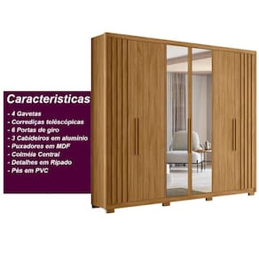 Guarda Roupa Casal 6 Portas 4 Gavetas com Espelho Araguaia Moval