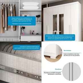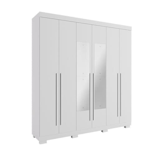 Guarda Roupa Casal 6 Portas Com Espelho Agata Acp Móveis Branco