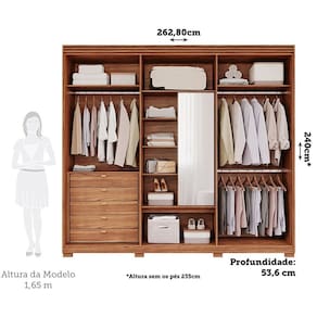 Guarda-Roupa Casal 6 Portas com Espelho Interno Giratório 235cm 100% MDF Turim Espresso Móveis Guarda Roupa 100% MDF, espaçoso, com divisórias internas pensadas para uma perfeita organização. As portas com grandes puxadores em alumínio na cor dourada, tornam o ambiente elegante e dá um toque sofisticado e charmoso. Espelho interno que proporciona reflexo de corpo inteiro. Os acessórios são de qualidade superior, suas 6 gavetas internas contam com corrediças metálicas telescópicas para deslize suave e puxadores em ABS. Os Cabideiros são em alumínio com suportes metálicos. Estilo : Moderno Modular : Não Peso (kg) : 223.45 Garantia : 03 Meses Altura (cm) : 240 Largura (cm) : 262.8 Possui Pés : 8 Possui Gancho : Não Possui Nichos : Não Possui Portas : Sim Tipo de Porta : Bater Altura dos Pés : 5 Possui Gavetas : Sim Tipo de Gaveta : Interna Possui Espelhos : Sim Profundidade (cm) : 53.6 Escala de Brilho : Brilhante Gaveta com Chave : Não Material dos Pés : ABS Possui Capelinha : Não Possui Sapateira : Não Serviço Montagem : 114259443 Material da Porta : MDF Origem do Produto : Nacional Possui Cabideiros : Sim Possui Iluminação : Não Ambiente Principal : Quarto Formato do Espelho : Retangular Material da Gaveta : MDF Material Principal : MDF Possui Penteadeira : Não Possui Prateleiras : Sim Acabamento da Porta : Pintura UV Possui Painel de TV : Não Acabamento da Gaveta : Pintura UV Quantidade de Portas : 6 Portas Tipo de Guarda-roupa : Casal Espessura do Fundo (mm) : 2.5 Material da Prateleira : MDF Peso Máximo por Gaveta : 5 Possui Espelho Interno : Sim Quantidade de Espelhos : 1 Espessura das Portas (mm) : 15 Acabamento da Prateleira : Pintura UV Tipo de Puxador da Porta : Externo Escala de Brilho da Porta : Brilhante Espessura da Estrutura (mm) : 15 Tipo de Puxador da Gaveta : Externo Escala de Brilho da Gaveta : Fosco Peso Máximo por Prateleira : 5 Tipo de Fixação do Espelho : Parafusos Tipo de Corrediça da Gaveta : Metálica Telescópica Espessura das Prateleiras (mm) : 15 Material do Puxador da Porta : Alumínio Possui Organizador de Gaveta : Não Material do Puxador da Gaveta : ABS Escala de Brilho da Prateleira : Fosco Espessura do Fundo das Gavetas (mm) : 2.5 Possui Espaço para Vestidos Longos : Não Tipo de Dobradiça/Corrediça da Porta : Metálica Marca : Espresso Móveis Cor Interna : Cinamomo Cor do Produto : Cinamomo/Grafiato Itens Inclusos : 1 Guarda roupa, Kit ferragens e Manual de Montagem. Cor Predominante : Bege Linha ou Coleção : Turim Quantidade de Cabideiros : 02 Cabideiros Quantidade de Prateleiras : 11 Prateleiras Quantidade de Gavetas : 06 Gavetas Quantidade de Portas com Espelhos : Nenhuma