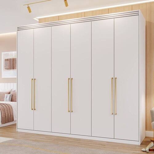 Guarda Roupa 100% MDF, espaçoso, com divisórias internas pensadas para uma perfeita organização. As portas com grandes puxadores em alumínio na cor dourada, tornam o ambiente elegante e dá um toque sofisticado e charmoso. Espelho interno que proporciona reflexo de corpo inteiro. Os acessórios são de qualidade superior, suas 6 gavetas internas contam com corrediças metálicas telescópicas para deslize suave e puxadores em ABS. Os Cabideiros são em alumínio com suportes metálicos. Acabamento da Prateleira: Pintura UV Escala de Brilho da Prateleira: Brilhante Possui Cabideiros: Sim Acabamento da Gaveta: Pintura UV Escala de Brilho da Gaveta: Brilhante Material do Puxador da Gaveta: ABS Possui Organizador de Gaveta: Não Acabamento da Porta: Pintura UV Escala de Brilho da Porta: Brilhante Material do Puxador da Porta: Alumínio Altura do Espelho: 129,6 cm Ambiente Principal: Quarto codigo_ean: 7900288094438 Complexidade da Montagem: Alta: deve ser montado por um montador especializado Cor: Branco Cor da Porta: Branco Cor do Produto: Branco Cor do Puxador: Dourado Cor Interna: Branco Escala de Brilho: Brilhante Espessura da Estrutura (mm): 15 mm Espessura das Portas (mm): 15 mm Espessura das Prateleiras (mm): 15 mm Espessura do Espelho: 3 mm Espessura do Fundo (mm): 2,5 mm Espessura do Fundo das Gavetas (mm): 2,5 mm Formato do Espelho: Retangular Gaveta com Chave: Não Itens Inclusos: 1 Guarda roupa, Kit ferragens e Manual de Montagem. Largura do Espelho: 41,1 cm Linha ou Coleção: Turim Manual de Montagem e Instalação: https://product-hub-prd.madeiramadeira.com.br/981554/documents/81cbb8fb-e2d9-48a7-a779-ed8ed518325c71571742234295981554150037.pdf Marca: Espresso Móveis Material da Gaveta: MDF Material da Porta: MDF Material da Prateleira: MDF Material Principal: MDF modular: Não Necessita Montagem: Sim Origem do Produto: Nacional Peso: 224,45 kg Peso Máximo por Gaveta: 5 kg Peso Máximo por Prateleira: 5 kg Possui Capelinha: Não Possui Espaço para Vestidos Longos: Não Possui Espelho: Sim Possui Espelho Interno: Sim Possui Ganchos: Não Possui iluminação: Não Possui Nichos: Não Possui Painel de TV: Não Possui Penteadeira: Não Possui Pés: Não Possui Portas: Sim Possui Prateleiras: Sim Possui Sapateira: Não Produto Montado: Sim Quantidade de Cabideiros: 02 Cabideiros Quantidade de Espelho: 01 Quantidade de Gavetas: 06 Gavetas Quantidade de Portas com Espelhos: Nenhuma Quantidade de Prateleiras: 11 Prateleiras Recomendações de Uso, Manutenção e Limpeza: Para limpeza utilizar somente pano limpo e macio, ligeiramente umedecido em água (apenas o bastante para remover a poeira), seguido de um pano seco. Sistema de Montagem: Parafusos autoatarraxantes, conjuntos minifix, cavilhas de madeira, acessórios plásticos e metálicos Tipo de Corrediça da Gaveta: Metálica Telescópica Tipo de Dobradiça/Corrediça da Porta: Metálica Tipo de Fixação do Espelho: Parafusos Tipo de Gaveta: Interna Tipo de Guarda-Roupa: Casal Tipo de Puxador da Gaveta: Externo Tipo de Puxador da Porta: Externo