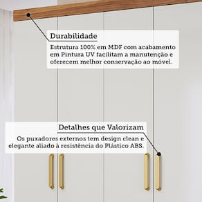 O Guarda Roupa Paraty é 100% MDF e agrega elegância ao seu ambiente, com divisórias internas pensadas para uma perfeita organização e uso compartilhado. Portas com puxadores em ABS. Na parte central contém 1 porta giratória com espelho e prateleiras que fazem a função de uma penteadeira. Suas 3 gavetas internas possuem corrediças metálicas telescópicas, os cabideiros são em alumínio com suportes metálicos. Acompanha pés com 5cm de altura, facilitando a limpeza! Acabamento da Prateleira: Pintura UV Escala de Brilho da Prateleira: Semi-Brilho Possui Cabideiros: Sim Acabamento da Gaveta: Pintura UV Escala de Brilho da Gaveta: Semi-Brilho Possui Organizador de Gaveta: Não Acabamento da Porta: Pintura UV Escala de Brilho da Porta: Semi-Brilho Material do Puxador da Porta: Plástico Altura do Espelho: 65 cm Altura dos Pés: 5 cm Altura Máxima dos Pés: 5.0000 Ambiente Principal: Quarto codigo_ean: 7900288343826 Complexidade da Montagem: Alta: deve ser montado por um montador especializado Cor: Cinamomo/Off White Cor do Produto: Cinamomo/Off White Cor Interna: Cinamomo Escala de Brilho: Semi-Brilho Espessura da Estrutura (mm): 12 mm Espessura das Portas (mm): 12 mm Espessura das Prateleiras (mm): 12 mm Espessura do Espelho: 3 mm Espessura do Fundo (mm): 2,5 mm Espessura do Fundo das Gavetas (mm): 2,5 mm Formato do Espelho: Retangular Gaveta com Chave: Não Guarda-Roupa Suporta Até (kg): 80 kg Informações Complementares: Estrutura em 12mm e 15mm. Espelho interno giratório. Itens Inclusos: 1 Guarda-roupas, kit ferragens e manual de montagem Largura do Espelho: 25 cm Linha ou Coleção: Paraty Manual de Montagem e Instalação: https://product-hub-prd.madeiramadeira.com.br/160398021/documents/107052c7-44eb-4520-89fa-49148aabb3f53387635368017708396455858.pdf Marca: Espresso Móveis Material da Gaveta: MDF Material da Porta: MDF Material da Prateleira: MDF Material dos Pés: ABS Material Principal: MDF modular: Não Necessita Montagem: Sim Origem do Produto: Nacional Peso: 123,8 kg Peso Máximo por Gaveta: 5 kg Peso Máximo por Prateleira: 5 kg Possui Calceiros: 01 Possui Espelho: Sim Possui Espelho Interno: Sim Possui Pés: 08 Possui Portas: Sim Possui Prateleiras: Sim Possui Sapateira: Não Produto Montado: Sim Quantidade de Cabideiros: 01 Cabideiro Quantidade de Espelho: 01 Quantidade de Gavetas: 03 Gavetas Quantidade de Portas com Espelhos: Nenhuma Quantidade de Prateleiras: 07 Prateleiras Recomendações de Uso, Manutenção e Limpeza: Para limpeza utilize somente pano limpo e macio, ligeiramente umidecido em água (apenas o bastante para remover a poeira), seguido de um pano seco. Sistema de Montagem: Parafusos altoatarraxantes, conjuntos minifix, cavilha madeira, acessórios plásticos/metálicos Suporta Até (kg): 80 kg Tipo de Corrediça da Gaveta: Metálica Telescópica Tipo de Dobradiça/Corrediça da Porta: Metálica Tipo de Fixação do Espelho: Parafusos Tipo de Gaveta: Interna Tipo de Guarda-Roupa: Casal Tipo de Puxador da Gaveta: Não Possui Tipo de Puxador da Porta: Externo