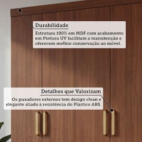 O Guarda Roupa Paraty é 100% MDF e agrega elegância ao seu ambiente, com divisórias internas pensadas para uma perfeita organização e uso compartilhado. Portas com puxadores em ABS. Na parte central contém 1 porta giratória com espelho e prateleiras que fazem a função de uma penteadeira. Suas 3 gavetas internas possuem corrediças metálicas telescópicas, os cabideiros são em alumínio com suportes metálicos. Acompanha pés com 5cm de altura, facilitando a limpeza! Acabamento da Prateleira: Pintura UV Escala de Brilho da Prateleira: Semi-Brilho Possui Cabideiros: Sim Acabamento da Gaveta: Pintura UV Escala de Brilho da Gaveta: Semi-Brilho Possui Organizador de Gaveta: Não Acabamento da Porta: Pintura UV Escala de Brilho da Porta: Semi-Brilho Material do Puxador da Porta: Plástico Altura do Espelho: 65 cm Altura dos Pés: 5 cm Altura Máxima dos Pés: 5.0000 Ambiente Principal: Quarto codigo_ean: 7900288343857 Complexidade da Montagem: Alta: deve ser montado por um montador especializado Cor: Jequitiba Cor do Produto: Jequitiba Cor Interna: Jequitibá Escala de Brilho: Semi-Brilho Espessura da Estrutura (mm): 12 mm Espessura das Portas (mm): 12 mm Espessura das Prateleiras (mm): 12 mm Espessura do Espelho: 3 mm Espessura do Fundo (mm): 2,5 mm Espessura do Fundo das Gavetas (mm): 2,5 mm Formato do Espelho: Retangular Gaveta com Chave: Não Guarda-Roupa Suporta Até (kg): 80 kg Informações Complementares: Estrutura em 12mm e 15mm. Espelho interno giratório. Itens Inclusos: 1 Guarda-roupas, kit ferragens e manual de montagem Largura do Espelho: 25 cm Linha ou Coleção: Paraty Manual de Montagem e Instalação: https://product-hub-prd.madeiramadeira.com.br/532788300/documents/e7b53bff-f90b-49b8-9011-7a775dce7ff23387663368017708397929548.pdf Marca: Espresso Móveis Material da Gaveta: MDF Material da Porta: MDF Material da Prateleira: MDF Material dos Pés: ABS Material Principal: MDF modular: Não Necessita Montagem: Sim Origem do Produto: Nacional Peso: 123,8 kg Peso Máximo por Gaveta: 5 kg Peso Máximo por Prateleira: 5 kg Possui Calceiros: 01 Possui Espelho: Sim Possui Espelho Interno: Sim Possui Pés: 08 Possui Portas: Sim Possui Prateleiras: Sim Possui Sapateira: Não Produto Montado: Sim Quantidade de Cabideiros: 01 Cabideiro Quantidade de Espelho: 01 Quantidade de Gavetas: 03 Gavetas Quantidade de Portas com Espelhos: Nenhuma Quantidade de Prateleiras: 07 Prateleiras Recomendações de Uso, Manutenção e Limpeza: Para limpeza utilize somente pano limpo e macio, ligeiramente umidecido em água (apenas o bastante para remover a poeira), seguido de um pano seco. Sistema de Montagem: Parafusos altoatarraxantes, conjuntos minifix, cavilha madeira, acessórios plásticos/metálicos Suporta Até (kg): 80 kg Tipo de Corrediça da Gaveta: Metálica Telescópica Tipo de Dobradiça/Corrediça da Porta: Metálica Tipo de Fixação do Espelho: Parafusos Tipo de Gaveta: Interna Tipo de Guarda-Roupa: Casal Tipo de Puxador da Gaveta: Não Possui Tipo de Puxador da Porta: Externo