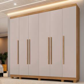Características: 6 Portas 12 prateleiras internas Cabideiro de alumínio Pés inclusos Puxadores internos em PVC Corrediça telescópicas Espaço para roupas longas 6 Gavetas
