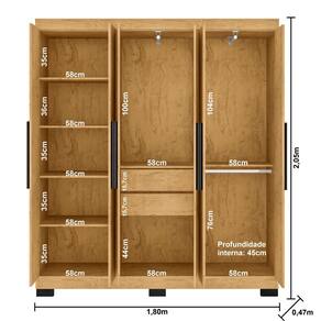 Dimensões: Altura: 205 cm Largura: 180 cm Profundidade: 47 cm Peso: 98,10 kg
