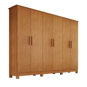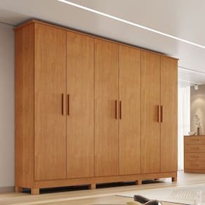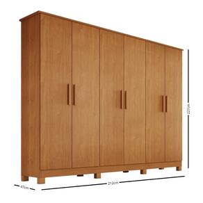 Características: Estrutura em MDF 6 Portas 4 Gavetas Corrediças telescópicas Prateleiras Espaços para roupa longa Cabideiros em alumínio Puxadores madeira Pés