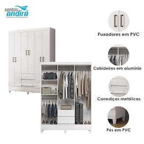 Guarda Roupa Casal 6 portas com pés Fit Branco Brilho - Santos Andirá