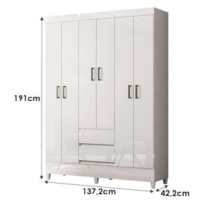 Guarda Roupa Casal 6 portas com pés Fit Branco Brilho: Um guarda-roupa completo para quem precisa de espaço: 6 portas, gavetas e cabideiros para organizar roupas de toda a família. Visual bonito, acabamento brilhante e pés que facilitam a limpeza tornam esse modelo uma escolha prática e elegante.