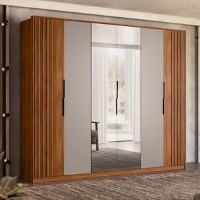 Guarda Roupa Casal 6 Portas Com Ripado e Com Espelho 6 Gavetas Atrice Demóbile