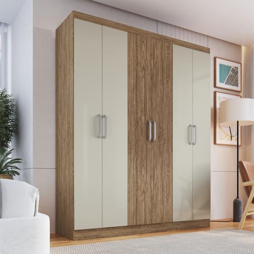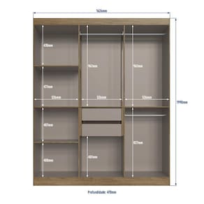 MDP frentes 15mm e caixas 12mmGuarda Roupa com 6 portas e duas gavetas internas com corrediças metálixas, com 2 m de altura e 1,6 m de largura. Puxadores em PP Fosco. Com cabideiros, calceiro e divisão interna com ótima distribuição das prateleiras.
