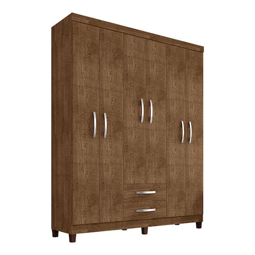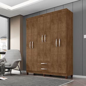 Com suas 6 portas, o Guarda Roupa Monique possui compartimentos bem distribuídos, incluindo prateleiras e cabideiros, que permitem uma organização eficiente. As 2 gavetas amplas são perfeitas para guardar roupas dobradas, roupas íntimas e outros itens menores, mantendo tudo em seu devido lugar e facilitando o acesso no dia a dia.