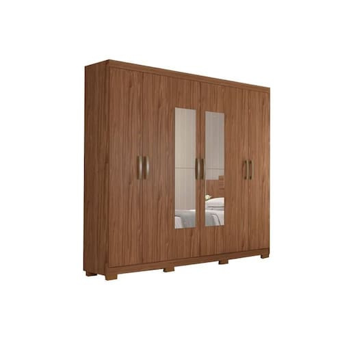 Guarda Roupa Casal 6 Portas e 3 Gavetas c/ Espelho Clara Avelã - Panan