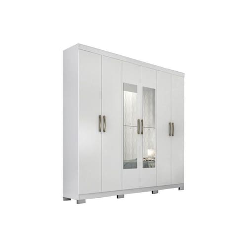 Guarda Roupa Casal 6 Portas e 3 Gavetas c/ Espelho Clara Branco - Panan