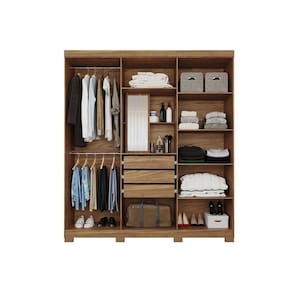 Tipo de Porta do Guarda-Roupa - Portas de Bater Material das Portas - Portas em MDF Tipo de Dobradiças - Dobradiça de Pressão Quantidade de Portas - 6 Portas de Abrir Tipo de Espelho - Espelho Interno Quantidade de Espelhos - 1 Espelho Material das Gavetas - Gavetas em MDF Tipo de Corrediça - c/ Corrediças Telescópicas Quantidade de Gavetas - 3 Tipo dos Pés - Pés em ABS Material das Prateleiras - Prateleiras em MDF Quantidade de Prateleiras - 5