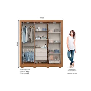 Dimensões(Cm): Comprimento(Profundidade): 46,5cm x Largura: 200cm x Altura: 215cm