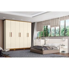 Guarda Roupa Casal 6 Portas E 3 Gavetas Cover Off White/nature - Henn