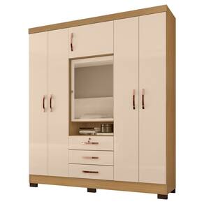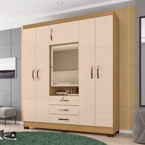 Guarda Roupa Casal 6 Portas e 3 Gavetas Imperial com Espelho Carvalho Americano/Off White - Incorplac