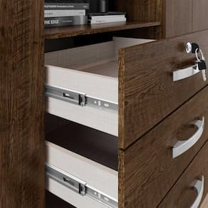 3 gavetas com corrediças metálicas, com 01 par de corrediça cada gaveta, totalizando