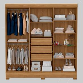 O Guarda Roupa Casal Prático da Demóbile oferece cabideiros para roupas, gavetas internas para roupas íntimas e prateleiras para itens como roupas de cama, toalhas, sapatos e acessórios. Com portas inteiriças que ampliam o ambiente e jogo de pés que facilita a limpeza, ele combina organização e praticidade para otimizar o espaço do quarto do casal. Ideal para quem busca um dia a dia mais fácil e um quarto mais organizado.