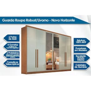 Guarda Roupa Casal 6 Portas e 4 Gavetas c/ Espelho Robust/Livorno Freijo Cumaru c/ Fendi - Novo Horizonte