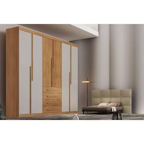 Material do Calceiro - Calceiro Metálico Material dos Cabideiros - Cabideira Metálico Tipo de Porta do Guarda-Roupa - Portas de Bater Material das Portas - Portas em MDF Tipo de Dobradiças - Dobradiças Metálicas - Dobradiça de Pressão Quantidade de Portas - 6 Portas de Abrir Tipo de Espelho - Sem Espelho Tipo de Corrediça - c/ Corrediças Telescópicas Quantidade de Gavetas - 4 Gavetas Material das Prateleiras - Prateleiras em MDF
